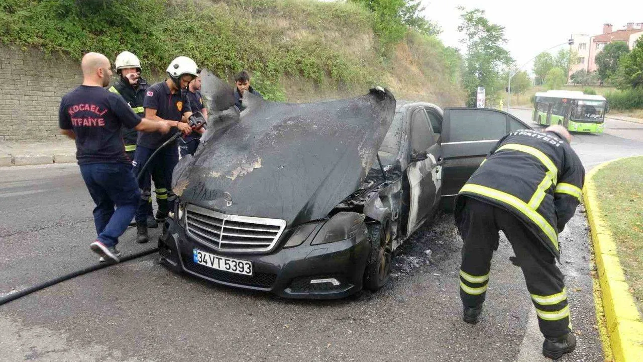 Kocaeli'nin İzmit ilçesinde arıza sebebiyle test sürüşüne çıkartılan lüks otomobilde seyir halindeyken yangın çıktı. Alev alev yanan otomobil kullanılamaz hale geldi.