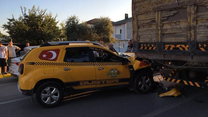 Ticari taksi kamyona arkadan çarptı: 1 yaralı