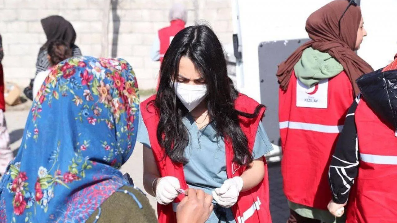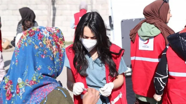 Deprem felaketinde büyük yıkımın yaşandığı illerde Kızılay sağlık çalışanları, 14 Mart Tıp Bayramı'nda da dışarı çıkamayan, evde sağlık hizmeti ihtiyacı duyan hastalar başta olmak üzere muayene olmak isteyen afetzedelere sağlık hizmeti sunmaya devam etti.
