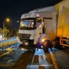Tır bariyerlere çarptı, Tekirdağ-İstanbul yolu trafiğe kapandı