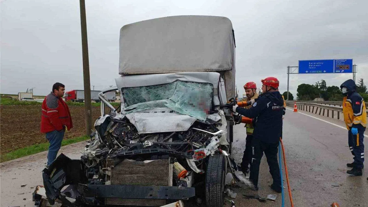 Kaza, Bursa-İzmir karayolu üzeri Karacabey ilçesi yakınlarında meydana geldi. Edinilen bilgiye göre, Karacabey’in Yenikaraağaç Mahallesi kavşağı yakınlarında İzmir yönünden Bursa istikametine seyreden Sedat K.’nin idaresindeki 16 HEV 09 plakalı tıra yine aynı istikamete seyreden Ahmet Y. yönetimindeki 16 AOB 729 plakalı kamyonet arkadan çarptı. Kazada araçta sıkışan kamyonet sürücüsü Ahmet Y., Karacabey itfaiye ekipleri tarafından sıkıştığı yerden çıkarıldı.
