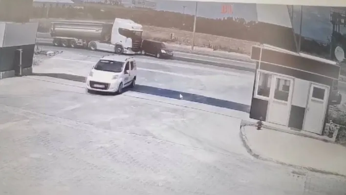 Otomobilin aniden tırın önüne kırdığı kaza anı kamerada