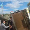 Tırın üstündeki asfalt silindiri yola devrildi: 1 yaralı