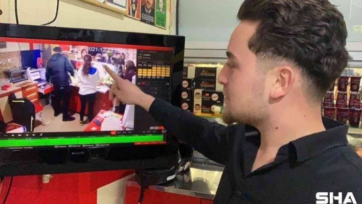 Öte yandan 2 kadının esnafı dolandırmaya çalıştığı anlar iş yerinin güvenlik kamerası tarafından saniye saniye kaydedildi. Görüntülerde 2 kadının iş yerine ayrı ayrı geldikleri, aralarından bir tanesinin kasaya doğru yöneldiği görünüyor. Kasaya gelen kadın, iş yeri sahibine parayı uzatıp, para üzerini geri alıyor. Görüntülerin devamında ise para üzerinden 100 lirayı ayıran kadın, el çabukluğuyla parayı yanındaki diğer kadına veriyor. Parayı alan kadın da kendi yaptığı alışverişin ücreti olarak bu parayı iş yeri sahibine uzatıyor.