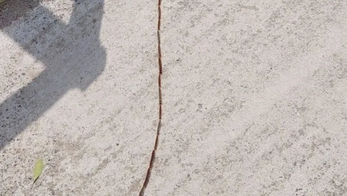 Konvoy oluşturup yeni yaşam alanlarına ilerleyen Çam Kese Tırtılları görüntülendi. Tırtılları gören bazı vatandaşlar, yerde hareket eden nesneleri ilk bakışta uzun bir yılan zannetse de gerçek, ilerleyen nesnelere yaklaşınca ortaya çıkıyor.
