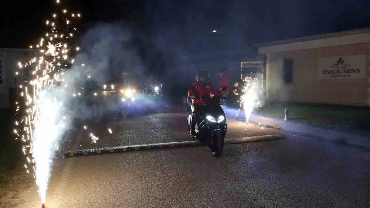 Motosikletçiler, Bakan Varank’a üzerinde Atatürk ve Türk bayrağı bulunan kırmızı bir motorcu yeleği hediye etti. Motorcuların havalimanı pistindeki sürüş eğitimini izleyen Varank, ekstrem enduro kategorisinde Bursa’yı temsil eden gençlerin gösterisini takip etti.