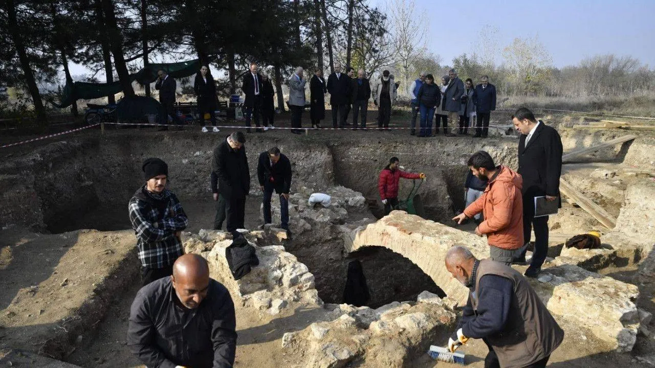 Kazı alanındaki incelemelerin ardından Milli Saraylar Başkanı Dr. Yasin Yıldız ve beraberindeki heyet Edirne Valiliğini ziyaret etti.