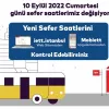 İstanbul Şehir Hatları’nın 2022-2023 Kış Tarifesi ise 19 Eylül 2022-Pazartesi günü başlayacak. Yaşanacak yoğunluklar göz önüne alınarak kış sezonuna göre düzenlenen seferler Haziran ayı ortalarına kadar geçerli olacak.