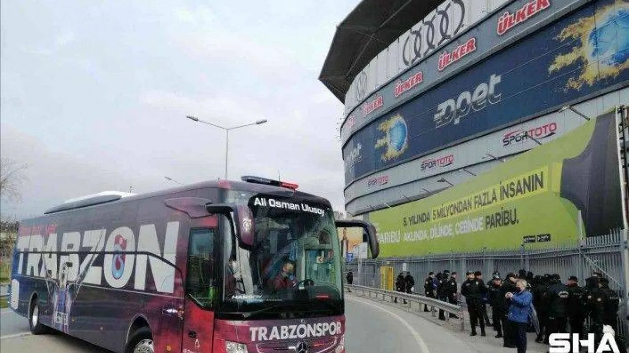 Spor Toto Süper Lig’in 28. haftasında Fenerbahçe ile karşılaşacak olan Trabzonspor kafilesi, Ülker Stadı’na geldi. Dün İstanbul’a ulaşan bordo-mavililer Beşiktaş’ta kaldığı otelden yoğun güvenlik önlemleriyle maçın oynanacağı stada giriş yaptı.
