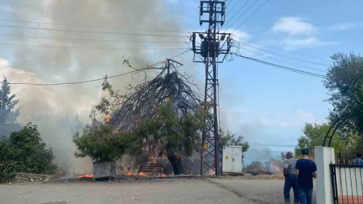 Trafo patladı, ağaçlar ve otluk alan alev aldı