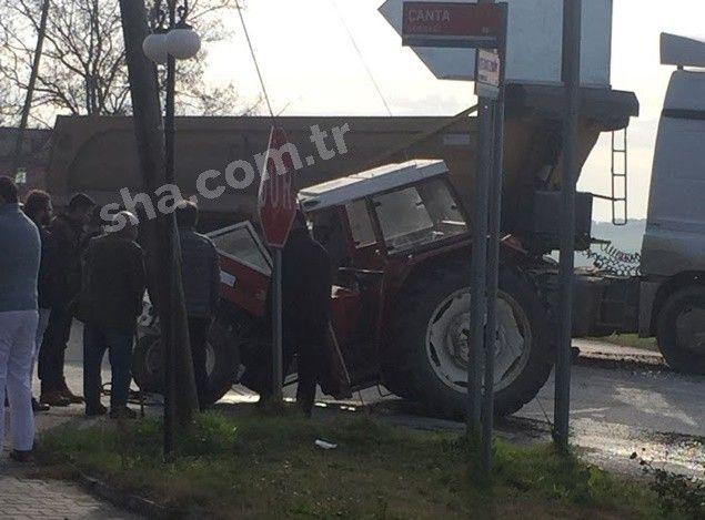 Kaza, bugün öğle saatlerinde Kınalı-Çeltik yolu üzeri Çerkezköy istikametinde meydana geldi. Edinilen bilgilere göre dikkatsizlik sonucu meydana geldiği öne sürülen kazada ölen yada yaralanan olmazken kazaya karışan traktör iki ayrıldı.