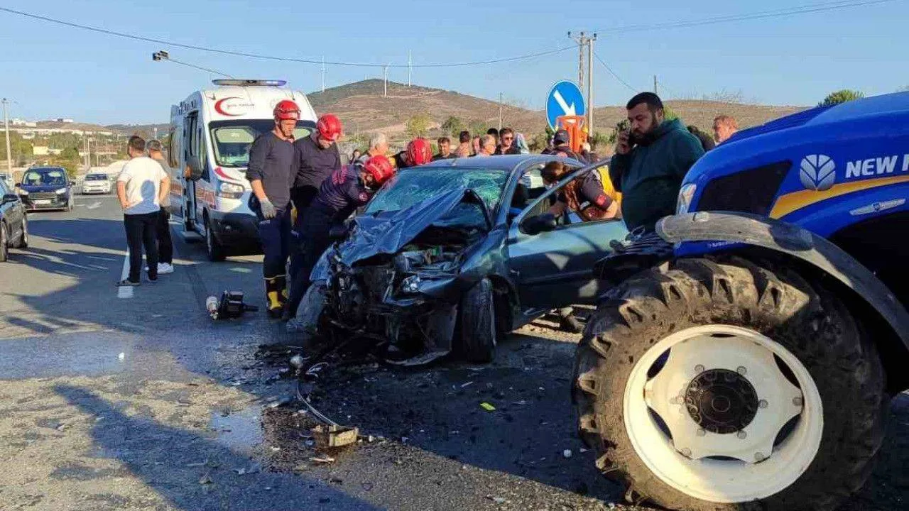 Traktör ile otomobil kaza yaptı: 2 yaralı