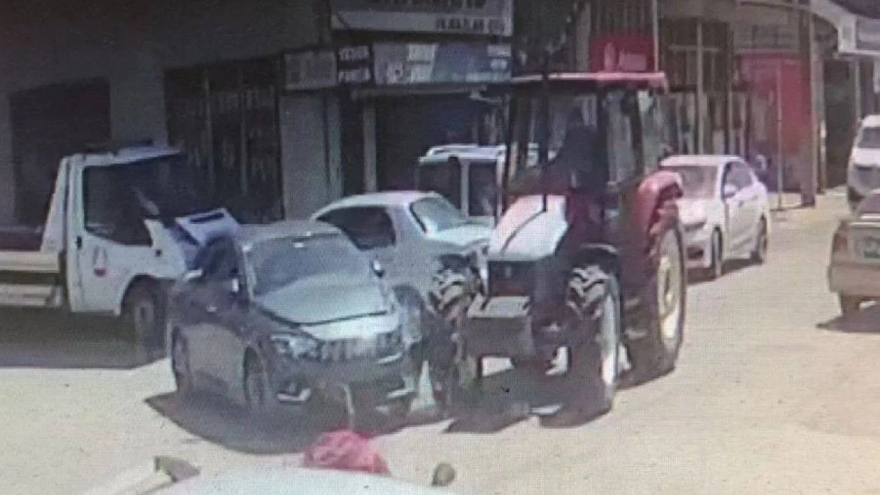 Traktörle otomobilin çarpıştığı yaralamalı kaza kamerada