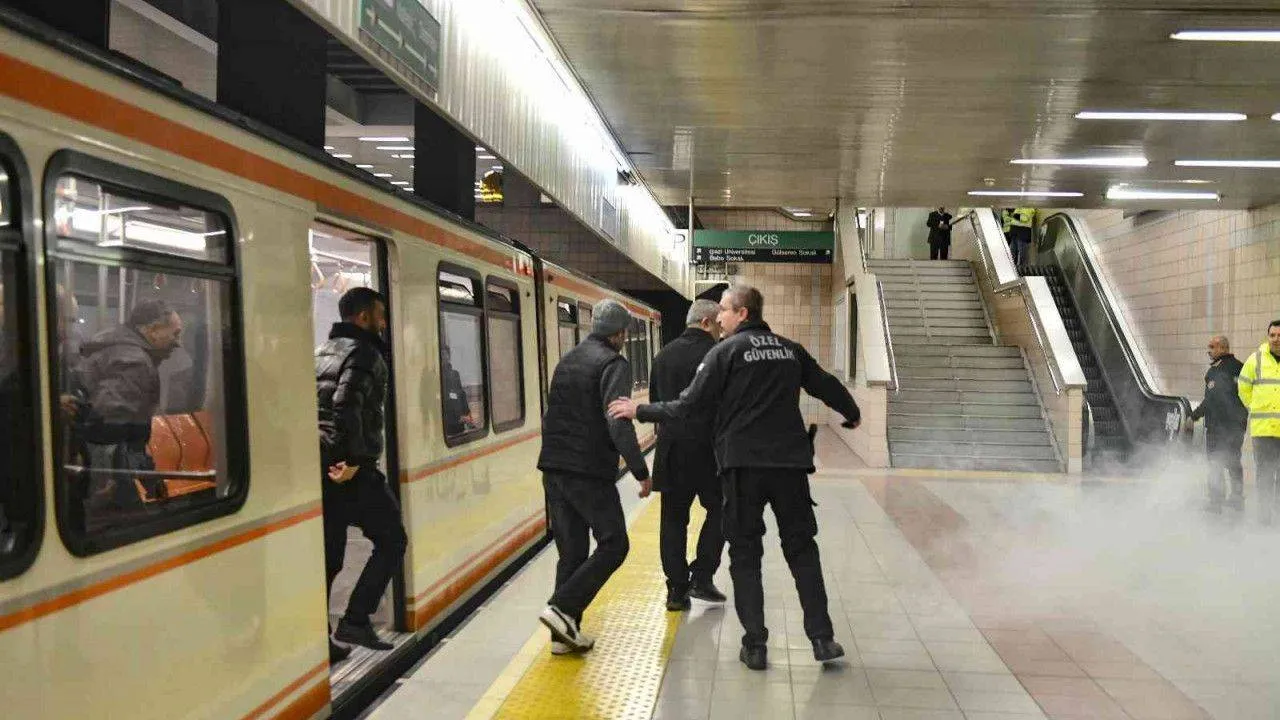 Maltepe İstasyonu’na yanaşan içi duman dolu vagona giren Ankara İtfaiyesi ekiplerinin, yolcuları başarılı bir şekilde çıkardığı tatbikatta, vagon içindeki duman da kısa sürede tahliye edildi.
