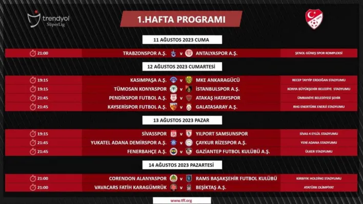Süper Lig’de 1. hafta programı: