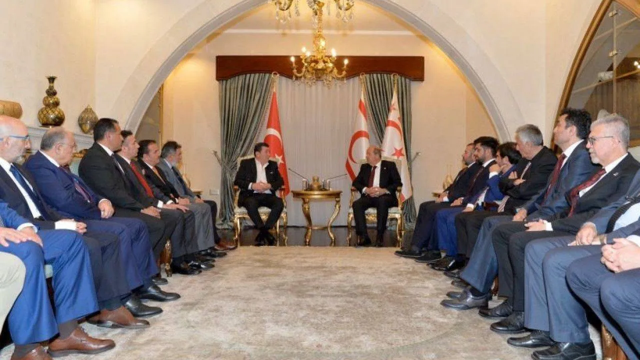 Türkiye Spor Yazarları Derneği Başkanı Oğuz Tongsir ve yönetim kurulu üyeleri ile Kıbrıs Türk Spor Yazarları Derneği Başkanı Burhan Gürkan ve yönetim kurulu üyeleri, Kuzey Kıbrıs Türk Cumhuriyeti (KKTC) Cumhurbaşkanı Ersin Tatar'ı ziyaret etti.
