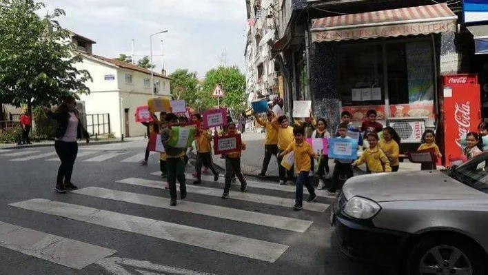 Turgut Reis İlkokulu öğrencileri trafiği durdurdu