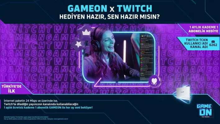 Türk Telekom GAMEON; yayın platformu Twitch ile gerçekleştirdiği iş birliği kapsamında kullanıcıların platform üzerinden takip ettikleri bir kanala 1 ay süresince ücretsiz Kademe 1 abone olma fırsatı sunuyor. Destek verdikleri kanalda anons edilecek GAMEON’lular aboneliğin getirdiği reklamsız yayın hakkı, aboneliğe özel rozetler ve ifadeler gibi yan haklardan da yararlanabilecek. 24 mbps ve üzeri hızda Türk Telekom GAMEON’lular kampanyadan her ay yararlanabilecek.