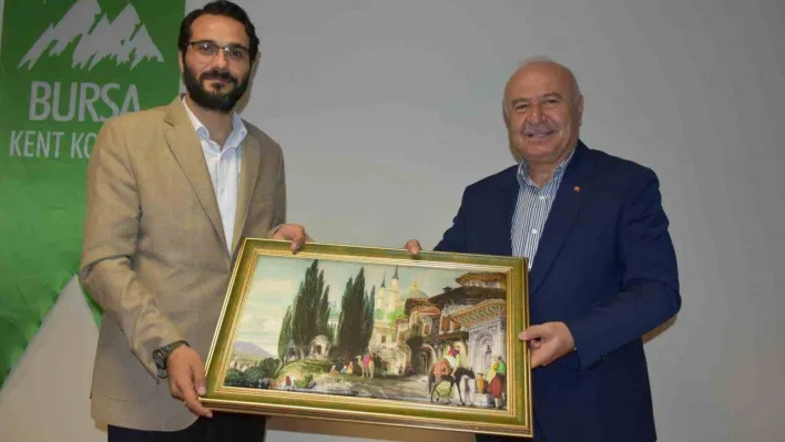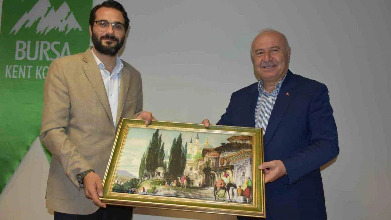 Bursa Kent Konseyi Başkanı Şevket Orhan da panelin ardından günün anısına Kültür ve Turizm Bakanlığı, Kültür Varlıkları ve Müzeler Genel Müdür Yardımcısı Dr. Yahya Coşkun’a tablo hediye etti.