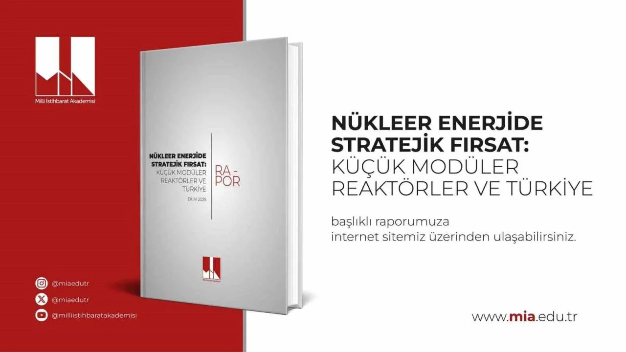 Milli İstihbarat Akademisi, "Nükleer Enerjide Stratejik Fırsat: Küçük Modüller Reaktörler ve Türkiye" başlıklı raporunu yayımladı. Raporda, artan enerji talebi, fosil yakıtlara bağımlılığın riskleri ve yenilenebilir kaynakların tek başına yeterli olamayacağına dikkat çekildi. Bu bağlamda küçük modüler reaktörlerin (KMR) enerji arz güvenliğini sağlamada stratejik bir çözüm olarak öne çıktığı belirtildi. Türkiye’nin kalkınma vizyonunda düşük karbonlu ve kesintisiz enerjiye erişim kritik bir öncelik olarak tanımlanırken, KMR’lerin bu hedefe katkı sağlayacağı ifade edildi. Ayrıca nükleer gücün uçak gemileri ve denizaltılar için uzun menzil, yüksek hız kapasitesi ve güç yoğunluğu gibi avantajlar sağladığı belirtilirken, Türkiye’nin NÜKDEN projesini hayata geçirmesinin stratejik önem arz ettiği kaydedildi. Raporda KMR’lerin yalnızca enerji üretiminde değil, aynı zamanda ekonomik büyüme, teknoloji transferi ve uluslararası iş birliği açısından da değerli fırsatlar sunduğu vurgulandı.