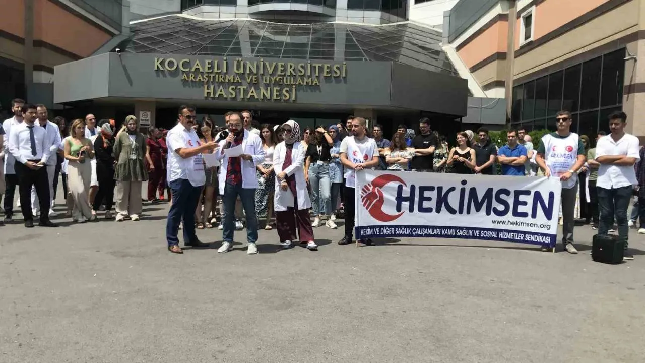 Kocaeli Üniversitesi Dahili Bilimler Asistan Hekim Temsilcisi Dr. Murat Aydoğmuş, "Biz Aralık 2022 sayım ve atamalarına göre 1 milyon 358 bin 558 sağlık çalışanı bugün yine yeni, yeniden haklarımızı aramak, şiddet eylemlerinden kaçınmak; kendimizin, ailemizin, hastalarımızın ve hatta kamu malının sağlığı için 1-2 Ağustos salı ve çarşamba günleri yeniden eylemdeyiz. Sağlıkta hizmet sektöründeki pek çok dalıyla, yetişmiş kalifiye çalışanlarıyla tüm Türk sağlık çalışanları sadece ülkenin değil, bölgesinin, Avrupa’nın ve tüm dünyanın göz bebeği konumundadır. Öncelikle bütün Türk hekimleri her ferdi ile bu ülkenin en zeki, en çalışkan ve sosyal olarak bu halka ve bu halkın müreffeh bir toplum olmaktaki muazzam ülküsüne en bağlı meslek grubudur. Nihayetinde bu hekimlerin her biri Türk milletinin bağrından yetişmiş, eşsiz bir geleneğin birer ürünüdürler" dedi.