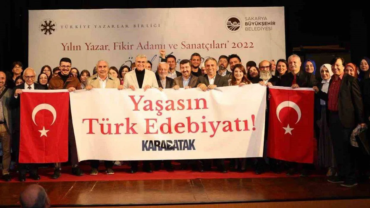Türkiye Yazarlar Birliği’nin “2022 Yılının Yazar, Fikir Adamı ve Sanatçıları” ödül töreni düzenlendi. Sakarya Büyükşehir Belediyesi ev sahipliğinde törende, Türkçe Edebiyat ifadelerine tepki gösterdi. Programda, hep bir ağızdan “Yaşasın Türk Edebiyatı” sloganları atıldı.