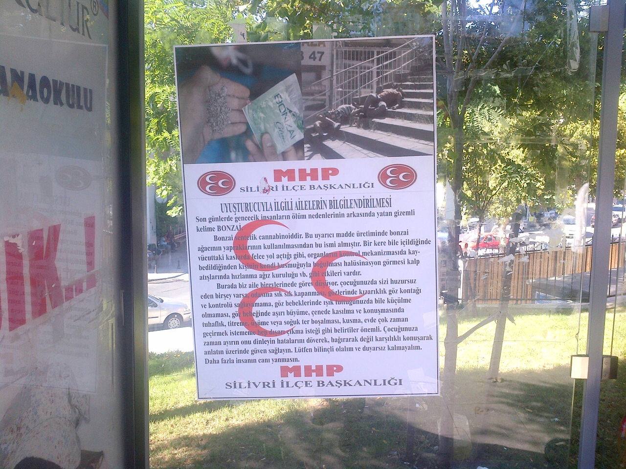 Bonzainin bu kadar yaygınlaşmasının sebebinin ucuz ve daha kolay temin edilebilmesi olduğuna dikkat çeken MHP Silivri İlçe Başkanı Şenoğlu Türkyılmaz, daha sonra şunları söyledi: “Bugün gözlerimizden sakındığımız çocuklarımızı, her sabah bıraktığımız okulların çevresi bu zehrin ticarethane merkezi olmuş. Yine ilçemizin ilgiye muhtaç bazı mahalleleri kötü niyetli kişi ve kişiler tarafından uyuşturucu merkezi haline getirilmeye çalışılmaktadır. Bu hususta yetkililer tarafından ivedilikle önlem alınması gerektiği kanaatindeyiz. Bonzaiden kaynaklı ölümlere semtimizde gencecik fidanlar solmakta. Bu da göstermektedir ki, zehir kapımıza kadar geldi. İstanbul’un en gözde ilçelerinden biri olan Silivri’de zehrin bu derece yaygınlaşması, bahsi geçen yetkililerin uyuşturucu ile mücadelede düştükleri aczi göstermektedir.