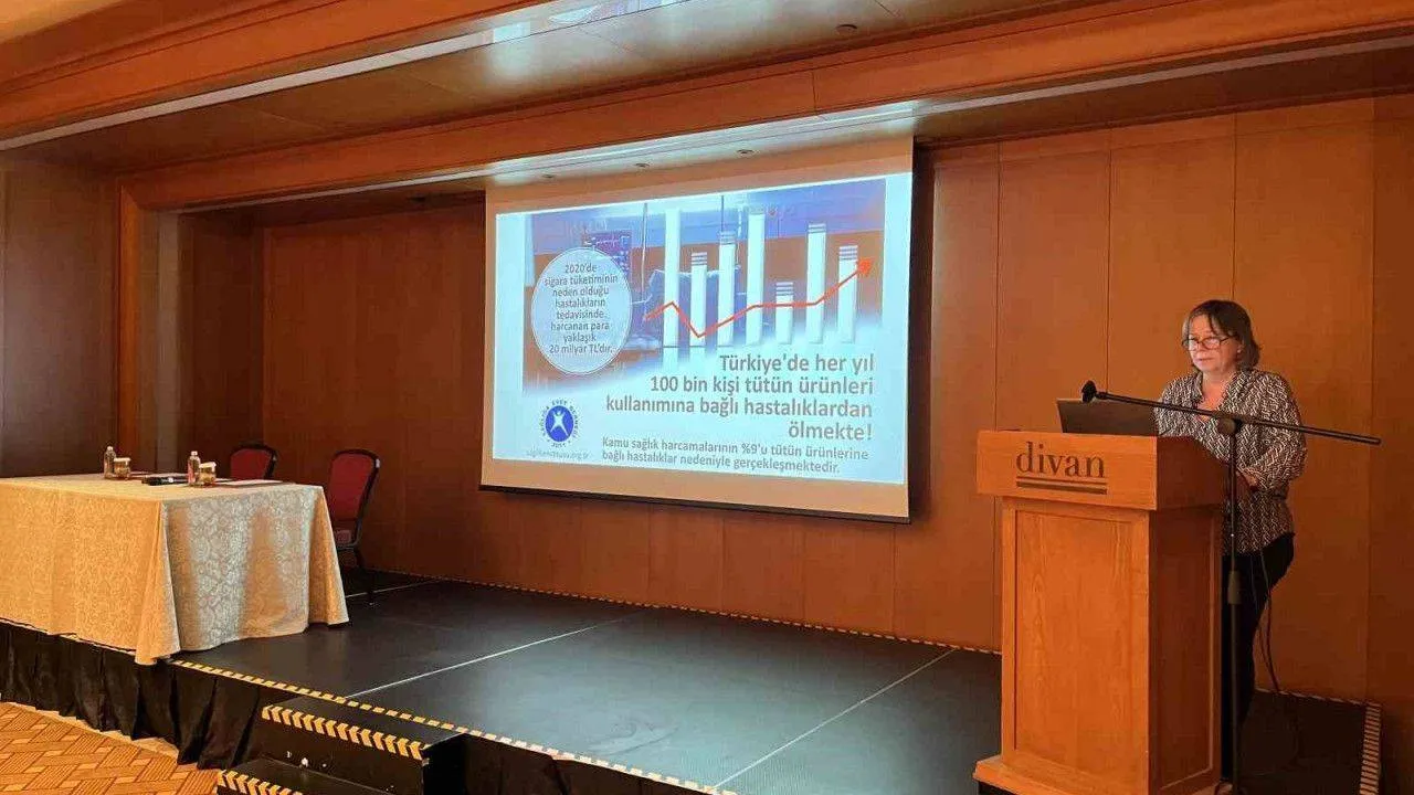 Sağlığa Evet Derneği Başkanı Prof. Dr. Elif Dağlı, Türkiye’de tütün ve tütün ürünlerinin kullanım oranlarının geçmişten günümüze artış gösterdiğini ve buna bağlı olarak da akciğer kanserinde doğru orantıda bir artış olduğunu belirterek, “Tütün kullanımı en önemli önlenebilir ölüm nedenidir. Dünyada hala her yıl sekiz milyon kişi tütün ürünlerini kullandıkları için yaşamlarını kaybetmektedirler. Tütün tüketimini azaltmak için en etkili yöntemin tütün vergileri ve fiyatlarını önemli ölçüde artırmak olduğu Dünya Sağlık Örgütünün Tütün Kontrolü Çerçeve Sözleşmesinin 6. maddesinde bildirilen bir hükümdür. Dünyada 1,3 milyar kişi tütün ürünleri kullanmaktadır, küresel nüfusun yüzde 22,3 ‘ü erişkin erkeklerin yüzde 36,7’si tütün kullanmaktadır. Bununla birlikte tütün üreticilerinin elde ettiği kazanç 2021’de 849,9 milyar dolar, 2022’de 867,6 milyar dolardır, bu kazancın 2030’a gelindiğinde ise 1049,9 milyar dolara ulaşacağı tahmin edilmektedir. Tütün satıcının önerdiği gibi kullanıldığında müşterisinin yarısını öldüren ve hala yasal satılan tek üründür. 20. yy’da 100 milyon kişiyi öldürmüştür, 21.yy’da 1 milyar kişiyi öldüreceği tahmin edilmektedir. Tütün her yıl 1,2 milyonu pasif etkilenimden olmak üzere 8 milyon kişinin ölümüne yol açmaktadır” dedi.