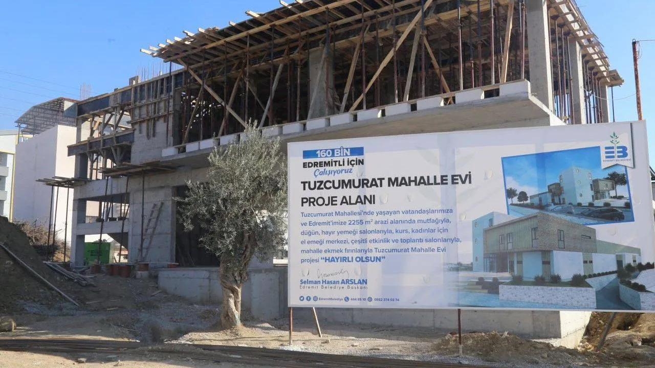 Balıkesir'in Edremit Belediyesi tarafından Tuzcumurat Mahallesi'nde vatandaşların önemli ihtiyaçlarından olan mahalle evinin yapımı hızla devam ediyor.
