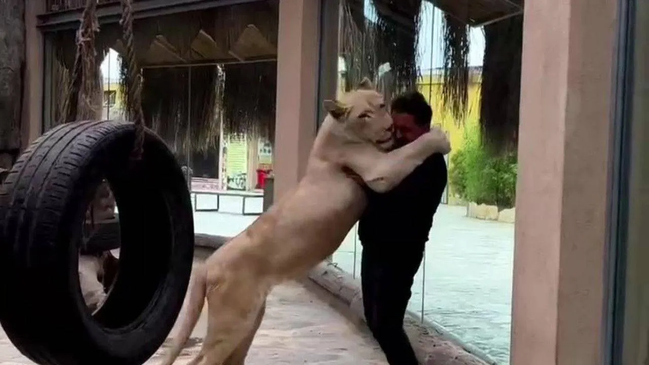 Yırtıcılığı ile bilinen aslan ile Yılmaz’ın kurduğu dostluk görenleri hayrete düşürürken, 1 buçuk yaşına giren aslan Angel’ın kendisini büyüten Yılmaz’a koşarak sarıldığı anlar sosyal medyada büyük ilgi topladı. Görüntülerde aslan Angel’ın kafesine giren Yılmaz’ı görünce büyük bir mutluluk yaşadığı, ikilinin kafeste birbirlerine sarıldığı anlar dikkat çekiyor.