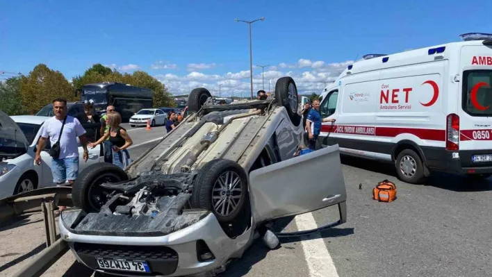 Tuzla'da TEM otoyolunda 3 otomobilin karıştığı zincirleme kazada bir otomobil takla attı. Takla atan otomobilde bulunan 1 kişi yaralandı.