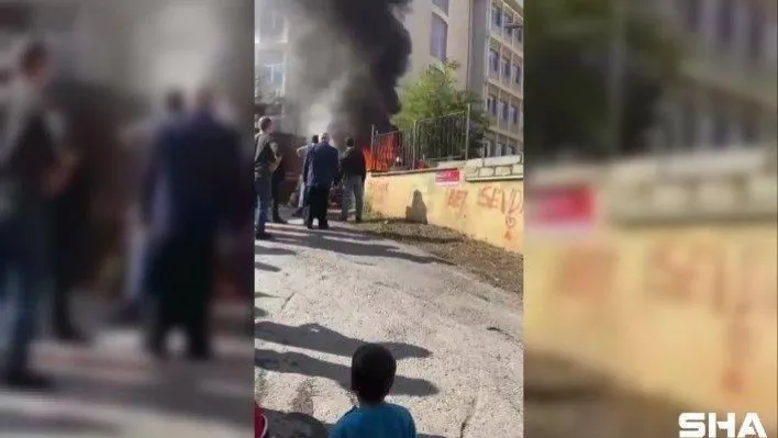 Okul servisinin alev alev yandığı anlar cep telefonu kamerasına anbean yansıdı.