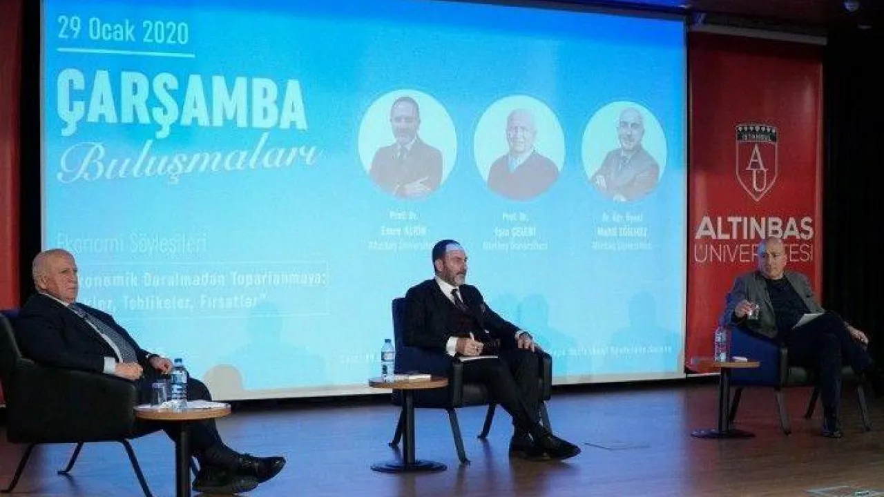 Altınbaş Üniversitesi'nce düzenlenen "Çarşamba Buluşmaları-Ekonomi Söyleşileri"nde bir araya gelen Prof. Dr. Emre Alkin, Prof. Dr. Işın Çelebi ve Dr. Mahfi Eğilmez, Türkiye ekonomisi 2020 tahminlerini ve ekonomideki son gelişmeleri açıkladı. Programda konuşan Altınbaş Üniversitesi Öğr. Üy. Prof. Dr. Emre Alkin, göstergelerin ekonomide geçen yıla göre canlanmaya işaret ettiğini belirterek sanayi üretiminin istikrarlı biçimde arttığını ifade etti. Dayanıklı tüketim mallarının üretimindeki artışın çok güçlü olmadığına dikkat çeken Prof. Dr. Alkin, reel sektör güven endeksinin de ocak ayında düştüğünü söyledi. Prof. Dr. Emre Alkin, Türkiye ekonomisinin 2020’de yüzde 4-5 oranında büyüyeceği tahmininde bulundu. “KÜRESEL TİCARETİN 2020 YILINDA ARTMASI BEKLENİYOR”