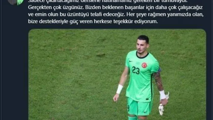 A Milli Futbol Takımı'nın kalecisi Uğurcan Çakır, hezimetle sonuçlanan EURO 2020'nin ardından paylaşımda bulundu. 25 yaşındaki file bekçisi, 'Bizden beklenen başarılar için daha çok çalışacağız ve emin olun bu üzüntüyü telafi edeceğiz' dedi.