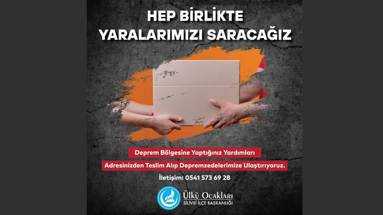 “Hep birlikte yaralarımızı saracağız” mesajını veren Silivri Ülkü Ocakları “Deprem bölgesine yapacağınız tüm yardımları adresinizden teslim alıp depremzedelerimize ulaştırılıyoruz” açıklamasında bulundu.