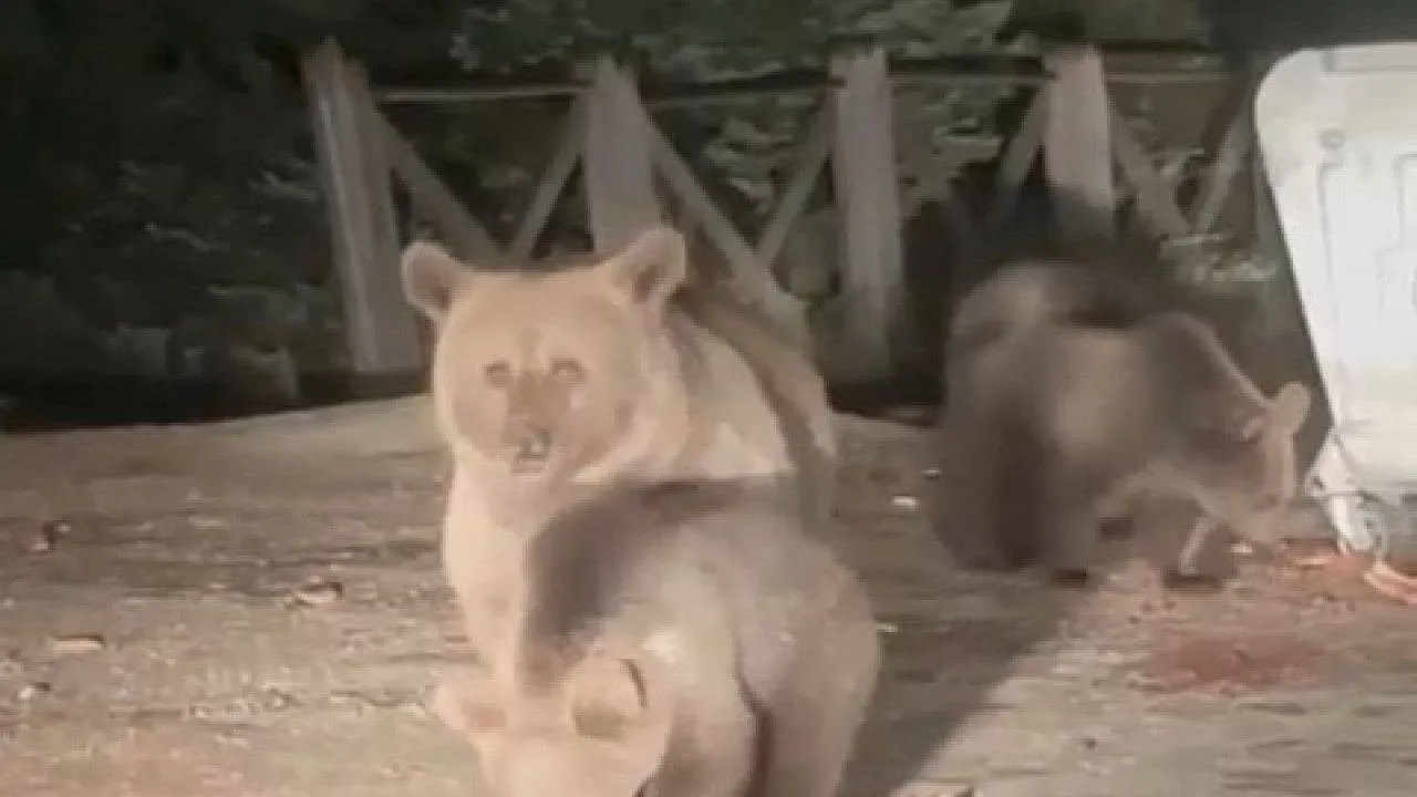Uludağ'da aç kalan ayılar çöp konteynerlerini karıştırıp yiyecek aradılar