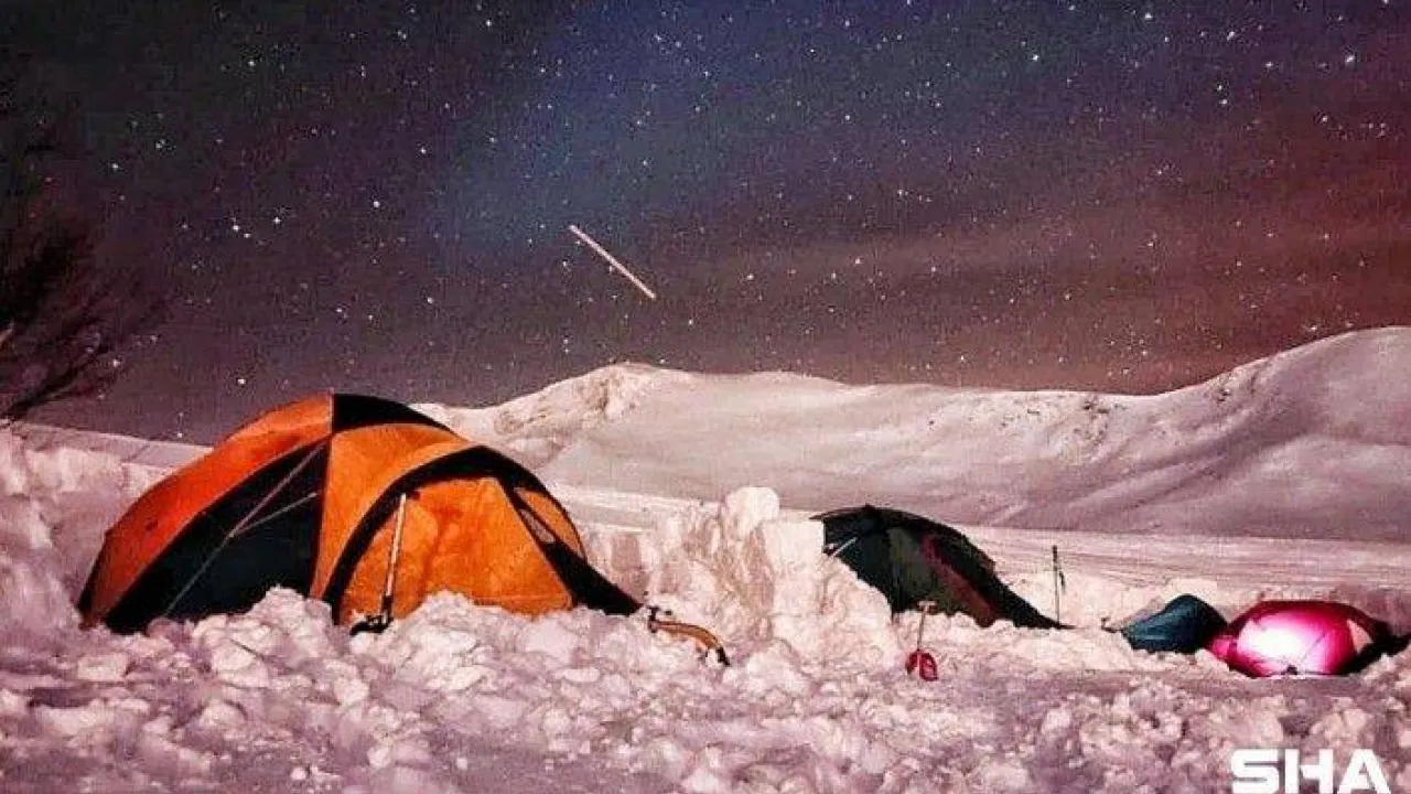 Bursa’da özel bir şirkette çalışan ve arama kurtarma ekibi üyesi Adem Gür ve arkadaşları, hafta sonunu tatilini 2543 metre ile Marmara Bölgesi’nin en yüksek noktasında Uludağ’da kamp atarak değerlendirdi. Çadırından uyku tulumuna, kamp ocağından tenceresine, içeceğinden yapacağı yemeğine kadar tüm malzemelerini sırt çantasında taşıyan ekip, Uludağ İkinci Oteller Bölgesinde kamp attı. Sıfırın altında 30 dereceye dayanacak donanıma sahip malzemelerle, 1.5 metreyi bulan karın üzerinde çadır kuran Gür ve arkadaşları, fırtınadan etkilenmemek için kar duvarı yaparak önlemi aldı. Gece - 15 dereceyi bulan kampta konforundan ödün vermeyen ve Uludağ’ın eşsiz manzarasında milyonlarca yıldızın altında geceyi çadırda kalarak geçiren dağcılar, çektikleri gece fotoğrafları ile o anları kayıt altına almayı ihmal etmiyor.