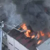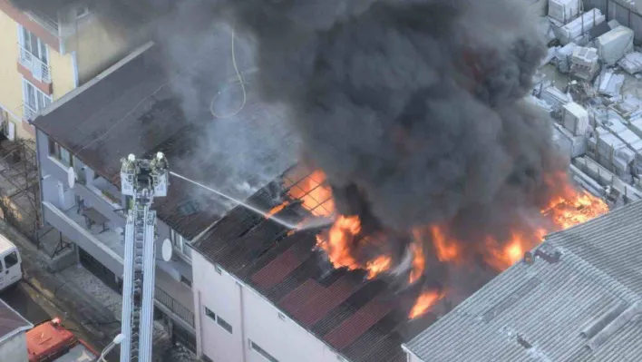 Ümraniye'de alev alev yanan iş yeri havadan görüntülendi