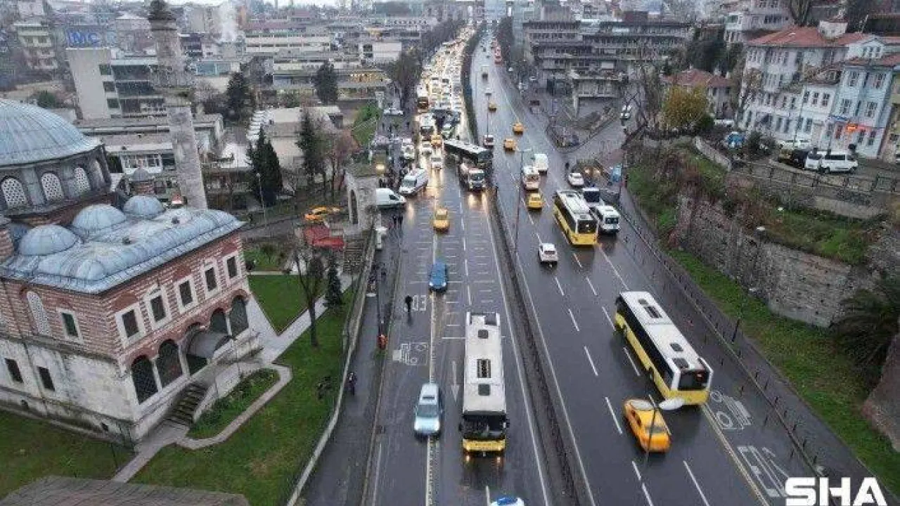 Fatih Unkapanı'nda 2 İETT otobüsü çarpıştı. İETT otobüslerinden biri refüje çarparak durabilirken kazada 8 kişi yaralandı. Kaza nedeniyle oluşan uzun araç kuyrukları drone ile görüntülendi.