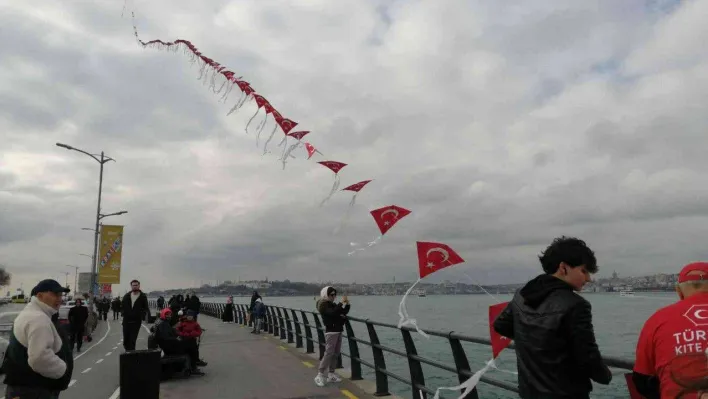 14 Ocak Uluslararası Uçurtma Günü etkinlikleri çerçevesinde, Üsküdar Sahili'nde Türk bayraklı uçurtmalar gökyüzünü süsledi. 150 adet Türk bayrağının birleştirilmesiyle 225 metre uzunluğa ulaşan uçurtmalar, vatandaşların da ilgisini çekti.