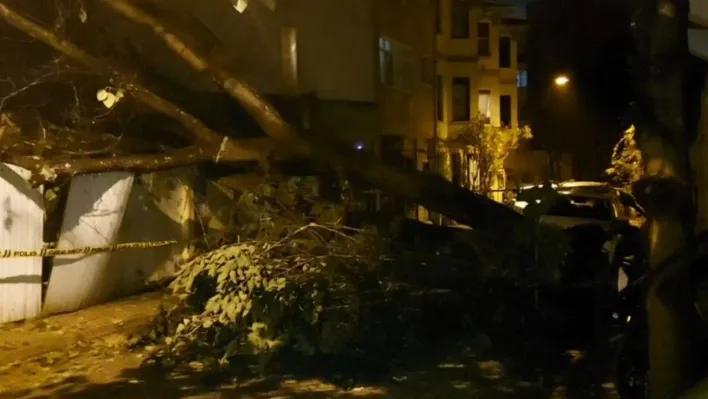 Üsküdar'da evin bahçe duvarına ağaç devrildi