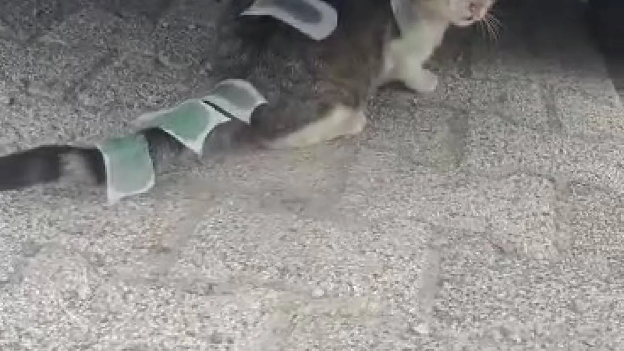 Üsküdar'da bir kedinin vücudunun çeşitli yerlerine ağda bantları yapıştırıldığı görüldü. Vücudundaki ağda bantlarıyla görenleri şaşkına çeviren kedi cep telefonu kamerasına yansıdı.