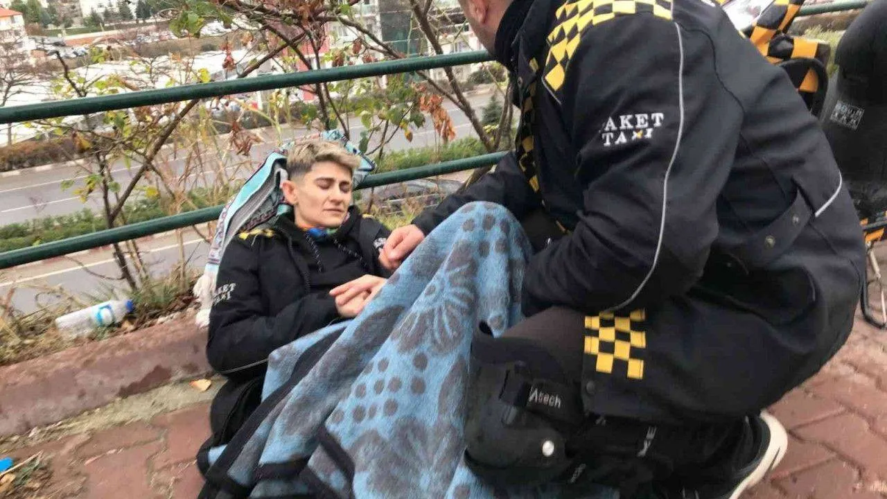 Bilecik’te motosikletin devrilmesi sonucu meydana gelen kazada yaralanan sürücüyü, yoldan geçen diğer bir sürücü aracından getirdiği battaniyeyi üzerine örterek soğuktan korumaya çalıştı.