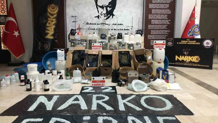 Edirne İl Emniyet Müdürlüğü Narkotik Suçlarla Mücadele Şubesi ekiplerince, uyuşturucu madde imalatı ve ticareti gerçekleştiren şahıslara yönelik takip sonucu İstanbul ve Sakarya’da operasyon düzenlendi. Edirne’de takibe alınan şüphelilerin Sakarya’nın Adapazarı ilçesinde faaliyet gösteren uyuşturucu madde imalathane deposuna gerçekleştirilen operasyonda, 2 ton 200 kilo uyuşturucu yapımında kullanılan hammadde, 8 kilogram 952 gram bonzai, 41 kilogram 500 gram bonzai yapımında kullanılan bitkisel hammadde, 25 bin sentetik ecza, uyuşturucu madde yapımında kullanılan çok sayıda laboratuvar malzemesi ele geçirildi.