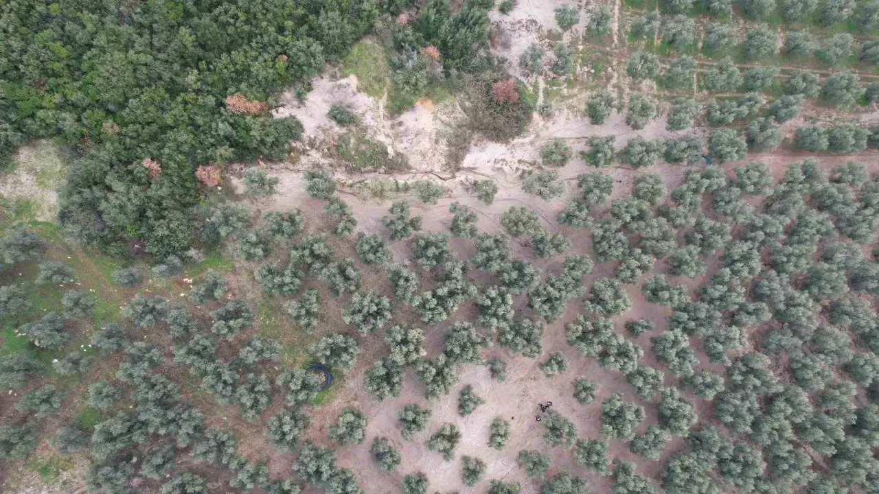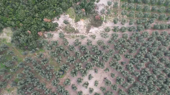 Zeytin bahçesinin içler acısı hali havadan görüntülendi