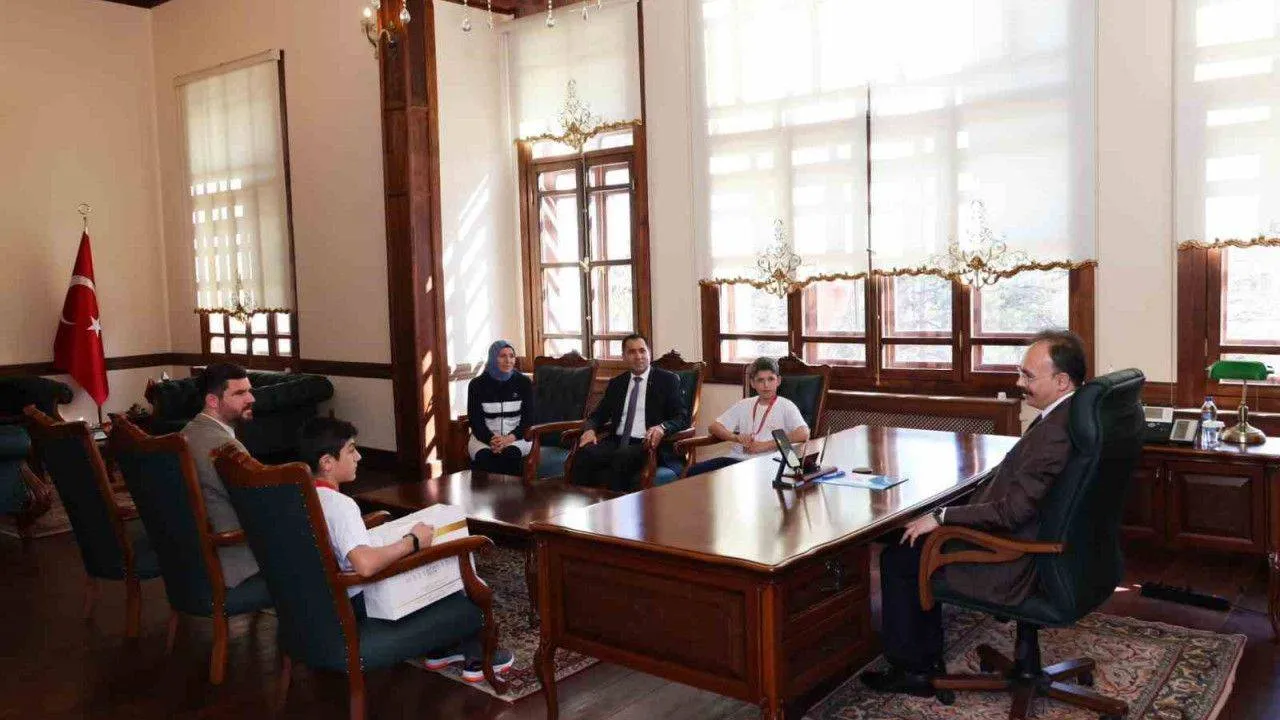 Vali Kızılkaya Erdem Demir ve Ayberk Baykal ile bir süre sohbet ettikten sonra hatıra fotoğrafı çekilerek hediyelerini takdim etti.