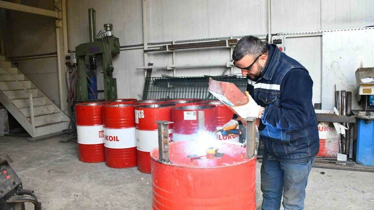 Kahramanmaraş merkezli meydana gelen 2 büyük depremin ardından, bölgede yaşanan kış şartlarında yaşamaya çalışan depremzedeler için Düzce Belediyesi, Kullanılmış varillerden açık hava sobaları üretiyor.