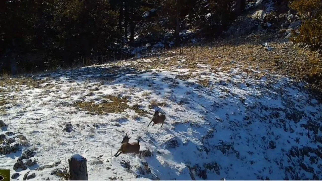 Yaban keçisi sürüsünün otlandığı alanda vaşağın avlanmaya çalıştığı anlar, Doğa Koruma ve Milli Parklar (DKMP) Genel Müdürlüğünce yerleştirilen fotokapana yansıdı.