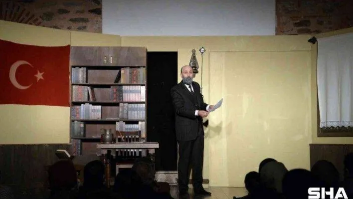 Mehmet Akif Ersoy'un İstiklâl Marşı'nı yazdığı dönemde geçirdiği zor günleri tiyatro sahnesine taşıyan 'Şair, Şiir, Şuur' oyunu, Osmangazi'de sanatseverlerle buluştu.