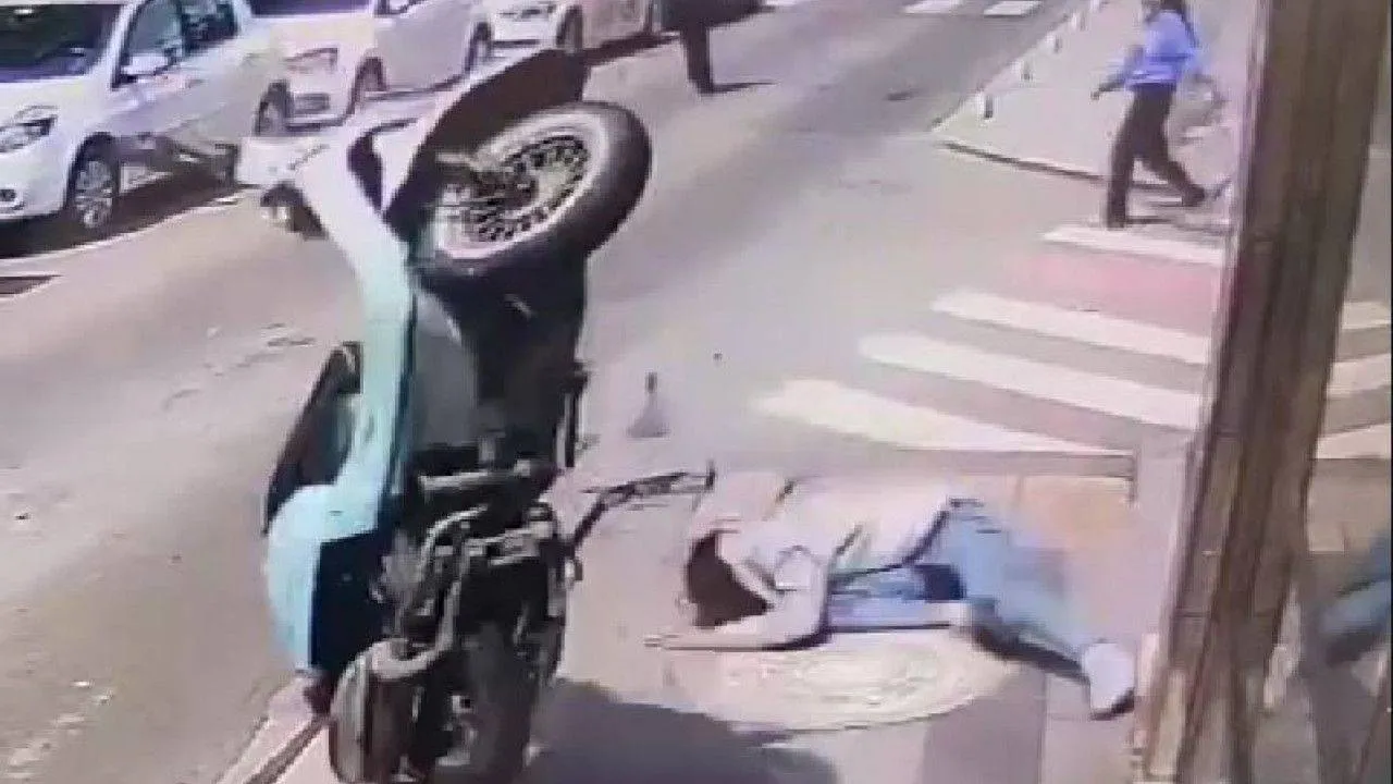 Tekirdağ Çorlu’da motosikletin kaldırıma çarparak yuvarlanması sonucu ehliyetsiz yabancı uyruklu sürücünün yaralandığı kaza kameraya yansıdı.